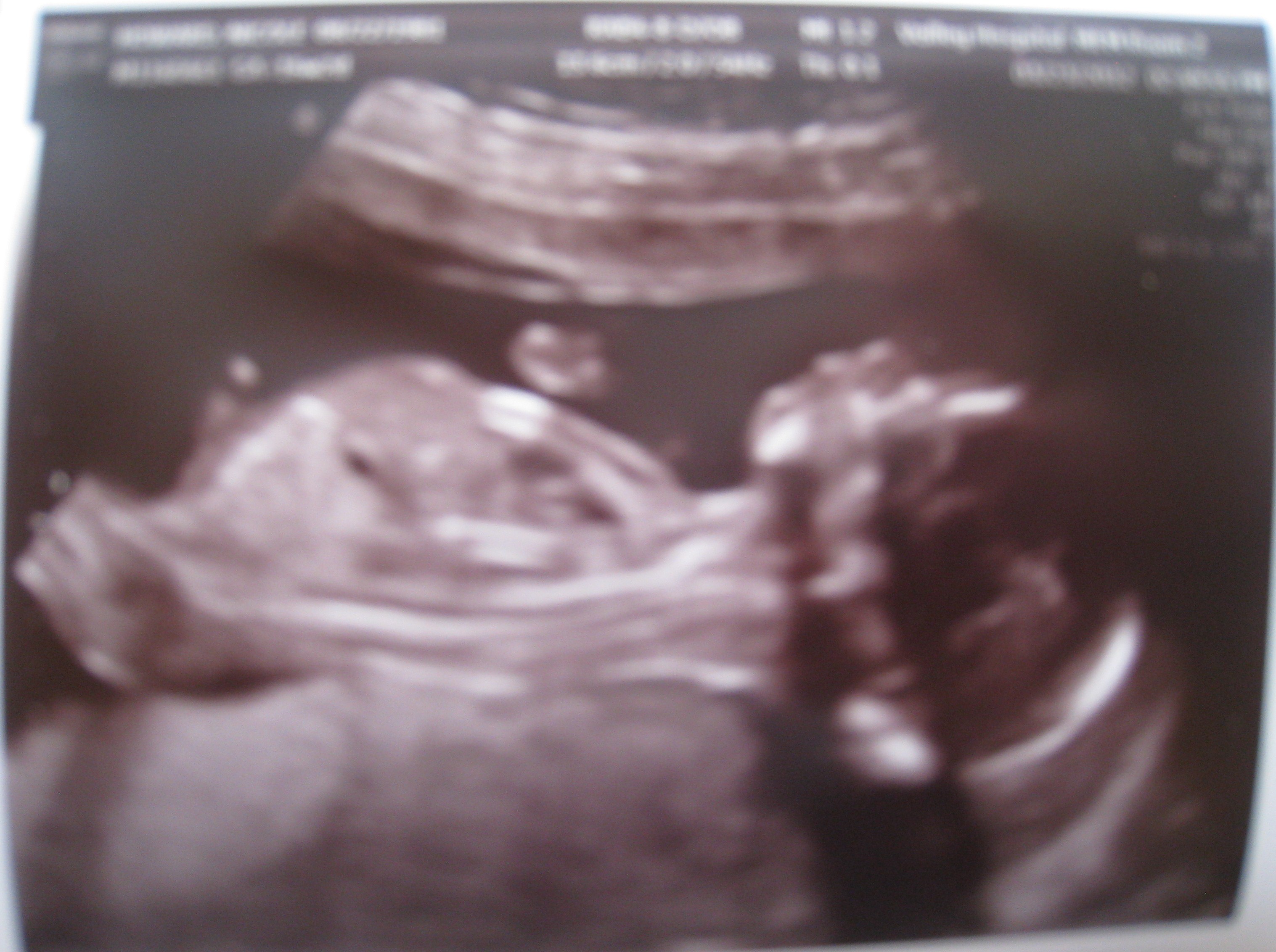 As background, I have a bicornuate or heart-shaped uterus – it’s actually a birth defect I never knew I had until I got pregnant the first time. Instead of a being a normal pear shape, my uterus has a deep indentation in the top center and looks like a heart. Depending on where the egg decides to implant, baby might not have enough room to grow to full term, so I am automatically classified as a high risk pregnancy. Even though Baby #1 was fine and Baby #2 is in the exact same spot and position (breech, stomping on my bladder), I still have to go in for fetal sonograms every 3 weeks. On the up side, I get lots of pictures (or I would if he didn’t keep his face smooshed into my placenta).